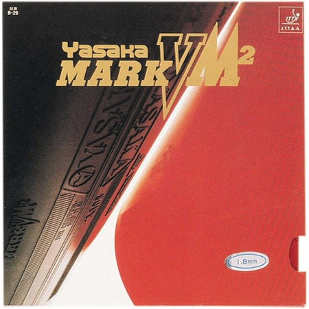 Typowa okładzina firmy Yasaka z serii Mark skoncentrowana na nadaniu piłce dużej rotacji i szybkości przy grze topspinowej . Wersja Yasaka Mark V M2 charakteryzuje się jeszcze bardziej " podręconymi parametrami " by umożliwić jeszcze bardziej optymalną grę topspinem . Grubość: czarna || czerwona: 1.8 mm | 2.0 mm | 2.3 mm tempo: 97 | kontrola: 92 | rotacja: 95 | Styl gry : OFF / Rodzaj okładziny : gładka / Podkład : Hard -