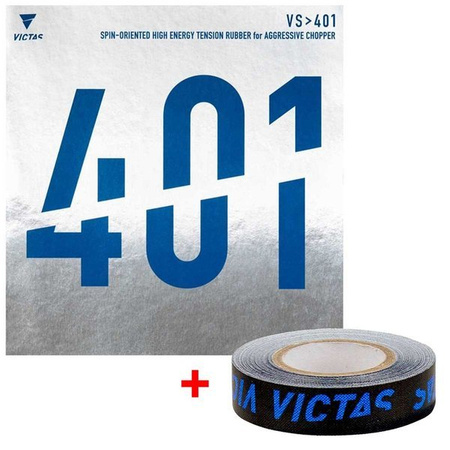 Zestaw składa się z okładziny Victas 401 + taśma ochronna 12mm/5m tejże firmy. O okładzinie: japońska produkcja, przyczepna, klejąca powierzchnia górna, allroundowa z wbudowanym efektem świeżego kleju.Podkład miękki. Przeznaczona dla zawodników i zawodniczek lubiących grać z dużą dozą kontroli.