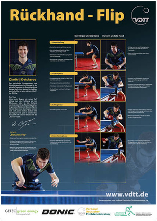 Na plakacie widnieje jeden z najlepszych tenisistów stołowych - świetnie operujący bekhendem - ostatnich 2 dekad XXI wieku Dmitrij Ovtcharov.