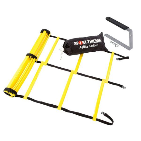 Szczeble drabinki koordynacyjnej "Agility" są wykonane z elastycznego i niełamliwego tworzywa sztucznego, a odległość między nimi można regulować. Drabinka koordynacyjna nadaje się do użytku wewnątrz i na zewnątrz. Przyssawki są przymocowane do spodu do użytku w pomieszczeniach, aby zapobiec poślizgnięciu się na gładkich powierzchniach. Do użytku na zewnątrz dołączone są kołki, dzięki którym drabinkę można również przymocować na boisku sportowym. Drabinka poczwórna składa się z 4 pojedynczych elementów o długości 2 metrów każdy, które można spiąć razem.