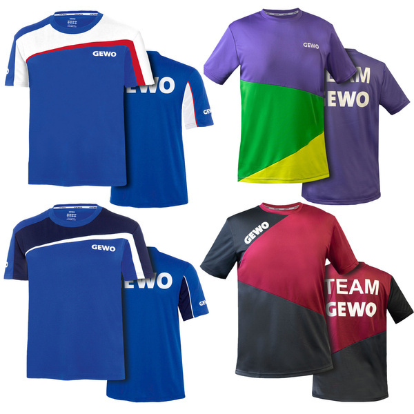 Zestaw 2 t-shirtów do wyboru z 4. Do wyboru: t-shirt Gewo Teramo poliester w kolorze niebieskim, t-shirt Teramo bawełna w kolorze niebiesko-białym, t-shirt Gewo Rossano w kolorze fioletowo-zielonym i t-shirt Gewo Ravello w kolorze szaro-bordowym