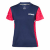 Nowość roku 2022.Damski T-shirt z dekoltem V, nadrukowanym logo GEWO na lewej piersi i na prawym rękawie, szykowny kobiecy nadruk na rękawach i po bokach. Długość rękawa krótki rękaw, przód i tył dobry do flokowania.Dopasowany, kobiecy kształt. Materiał:Micro Dryfit 140 g/m².