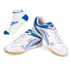 Zestaw składa się z butów Gewo Smash Flex + skarpet Gewo Flex 2. Uwaga:buty dostepne w sprzedaży od 10.10.2022 Zestaw GEWO SMASH-FLEX w okazałości. Lekki, przyczepny i stabilny! O butach: przyczepność nowych GEWO SMASH-FLEX gwarantuje podeszwa z naturalnej gumy ze zintegrowanym GRIP-BARS. Zapewnia to doskonałą trakcję dla Twoich stóp we wszystkich kierunkach. System torsion w obszarze śródstopia wspiera Twoją szybkość. Super lekka cholewka LONGLAST-PU jest pokryta punktami VENTILATION-SPOTS dla jak najlepszej oddychalności. STABLE OVERLAYS stabilizują stopę podczas szybkich RUCHÓW i zwinnych SIDE STEPS. GEWO SMASH-FLEX to topowy nowoczesny but zawodniczy o bardzo wysokim komforcie noszenia. Podeszwa środkowa EVA zapewnia optymalną amortyzację podczas użytkowania w pomieszczeniach, a HONEYCOMB INSOLE idealnie dopasowuje się do stopy. Dużą wagę przykładaliśmy do drobnych, ale wartościowych szczegółów: Dlatego na przykład obszar oczek w sznurówkach został wzmocniony dla pewnego sznurowania. A zintegrowany LACE-STRAP utrzymuje sznurowanie we właściwym miejscu, nawet podczas gorących meczów. GEWO SMASH-FLEX - tak musi wyglądać nowoczesny but do tenisa stołowego. W zestawie gratis: pasujący worek na buty. O skarpetach: modne, krótkie skarpety na dłuższy czas.Materiał: 80% bawełna , 18% poliamid, 2% elastan. .