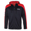 Bluza z kapturem, zamek błyskawiczny na całej długości, 2 kieszenie boczne, wyszywane logo GEWO na lewej piersi, nadrukowane logo GEWO na prawym rękawie, rękawy zakończone prosto, długie rękawy, z tyłu flokowanie. Prosty krój, swobodny luźny krój. Materiał 100% poliester (frotte/micro dryfit). Pasujące spodnie Lifestyle Basic.