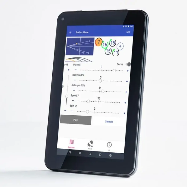 Innowacyjne i intuicyjne sterowanie tym zaawansowanym technologicznie urządzeniem odbywa się za pośrednictwem połączenia Bluetooth bezpośrednio przez aplikację AMICUS za pomocą tabletu z systemem Android wchodzącego w zakres dostawy lub alternatywnie za pomocą własnego smartfona/tabletu z systemem iOS (Apple) lub Android (nie wchodzi w zakres dostawy). Samodzielna konfiguracja ćwiczeń w mgnieniu oka nigdy nie była łatwiejsza. Dzięki wizualizacji trajektorii każdej piłki, można zdefiniować położenie, rotację, prędkość i wysokość wypuszczenia bez konieczności grania poszczególnymi piłkami.