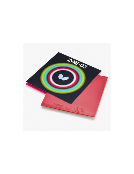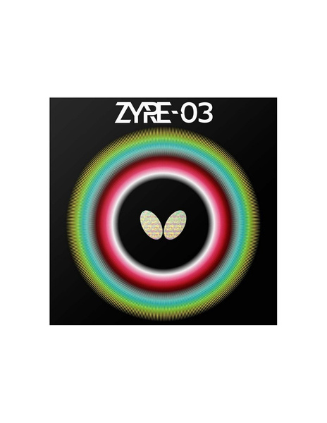 Zyre-03.Ricosheet z kodem wypukłości nr 303 generuje siłę dzięki rotacjiPokrycie Zyre składa się z nowatorskiego „Ricosheet”, warstwy wierzchniej z gęsto rozmieszczonymi, płaskimi wypukłościami oraz niezwykle grubej gąbki z technologią Spring Sponge X. Oprócz tej specjalnej struktury, okładzina posiada powierzchnię o zwiększonej odporności na ścieranie i doskonałym wyczuciu piłki. Dzięki zastosowaniu kodu wypustki nr 303, który rozwija siłę wraz z rotacją, Zyre 03 umożliwia uderzenia, które z silnym łukiem trafiają głęboko w połowę boiska przeciwnika. Okładzina ta jest zalecana dla graczy, którzy chcą dominować w grze dzięki mocnym uderzeniom z dużym spinem.